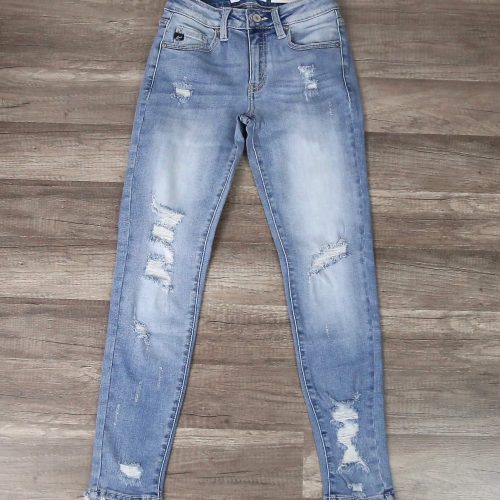 Puffervest Distressed Light Wash Faded High Rise Skinny Jeans