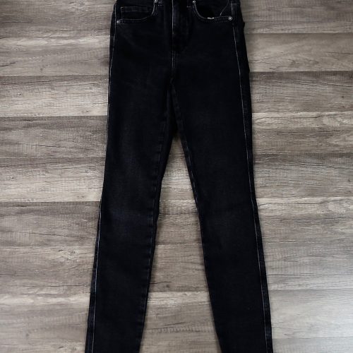 Puffervest Faded Dark Grey High Rise Distressed Skinny Jeans