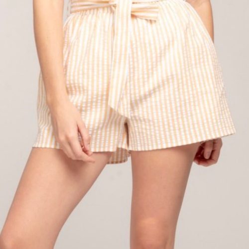 Puffervest – Striped Paper Bag Shorts in Yellow