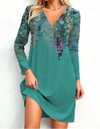 A Printed patchwork V-neck long-sleeved dress