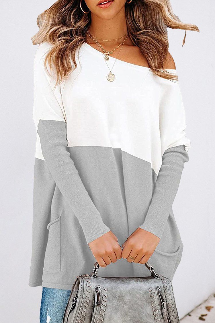 Puffervest Women’s Loose Knit Sweater One Shoulder Knit Pullover Color Block Pullover