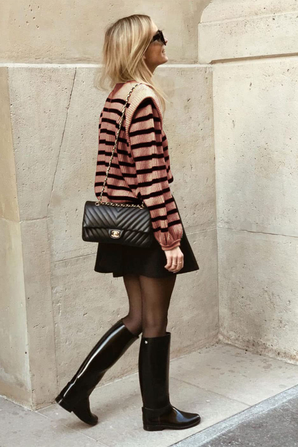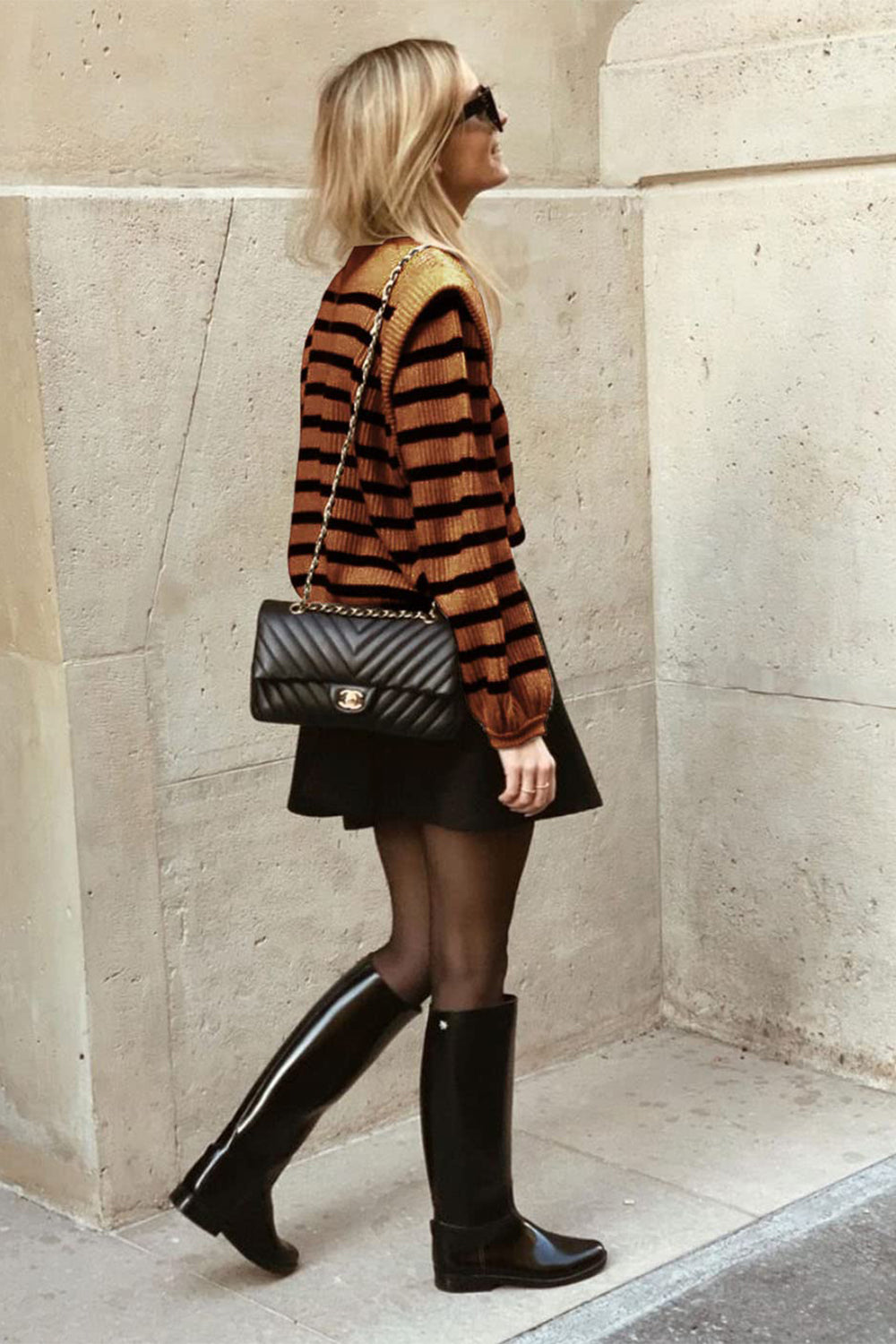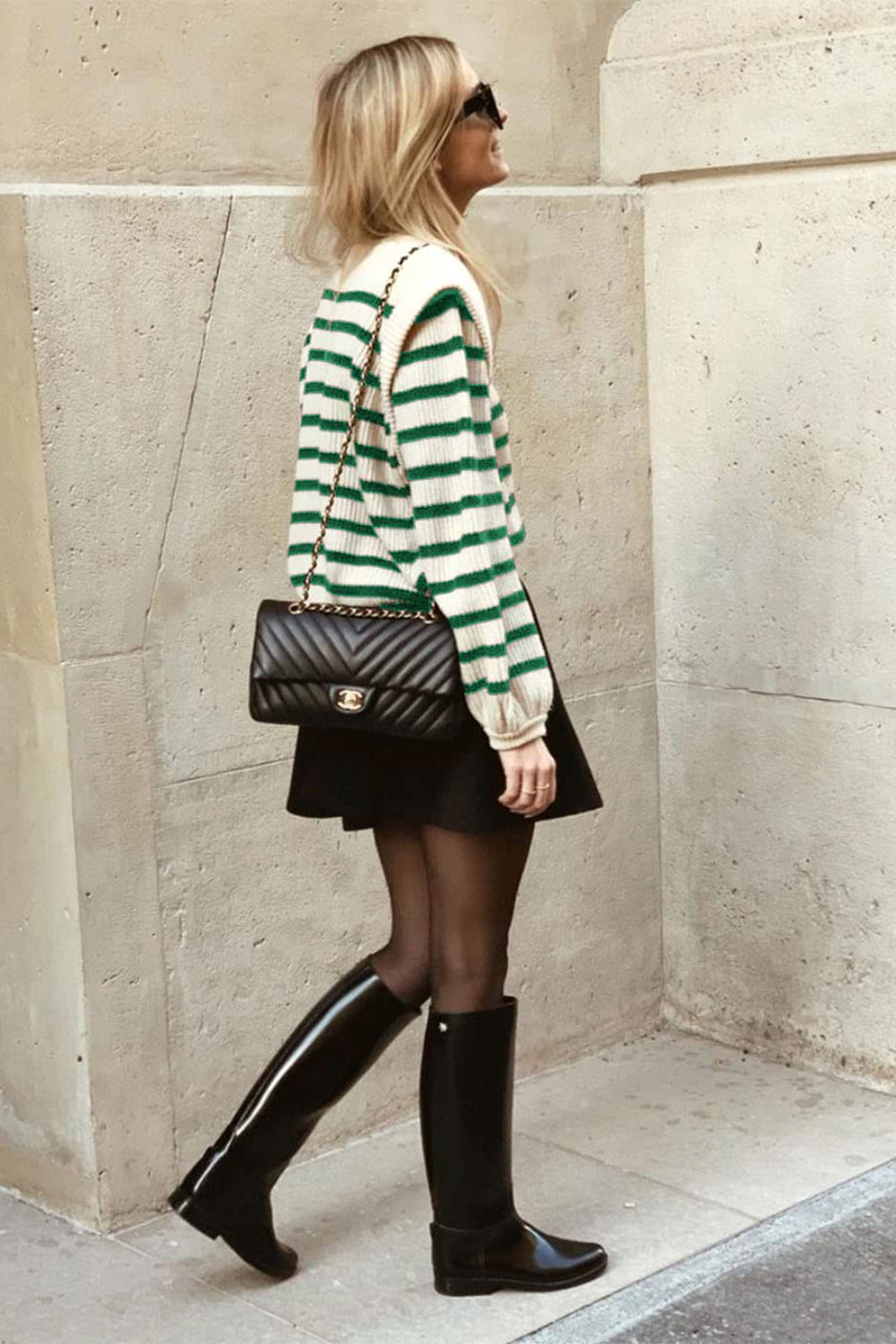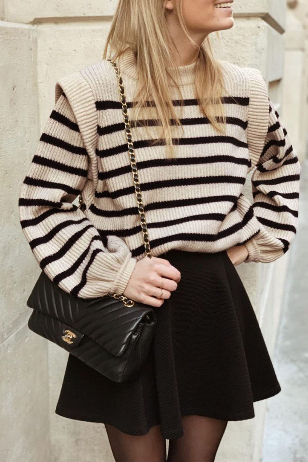 Long Lantern Sleeve Striped Ribbed Knit Pullover Top quantity