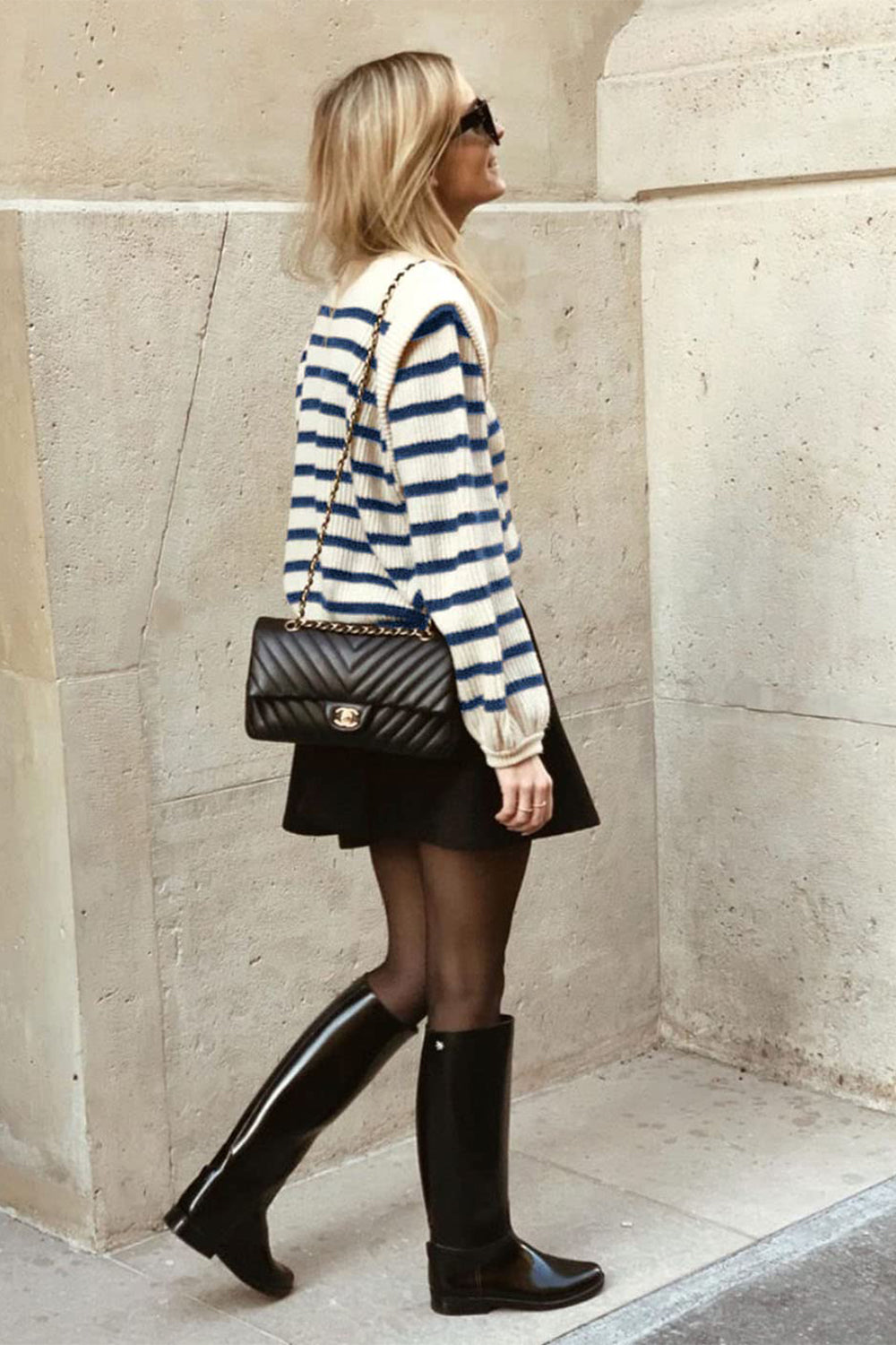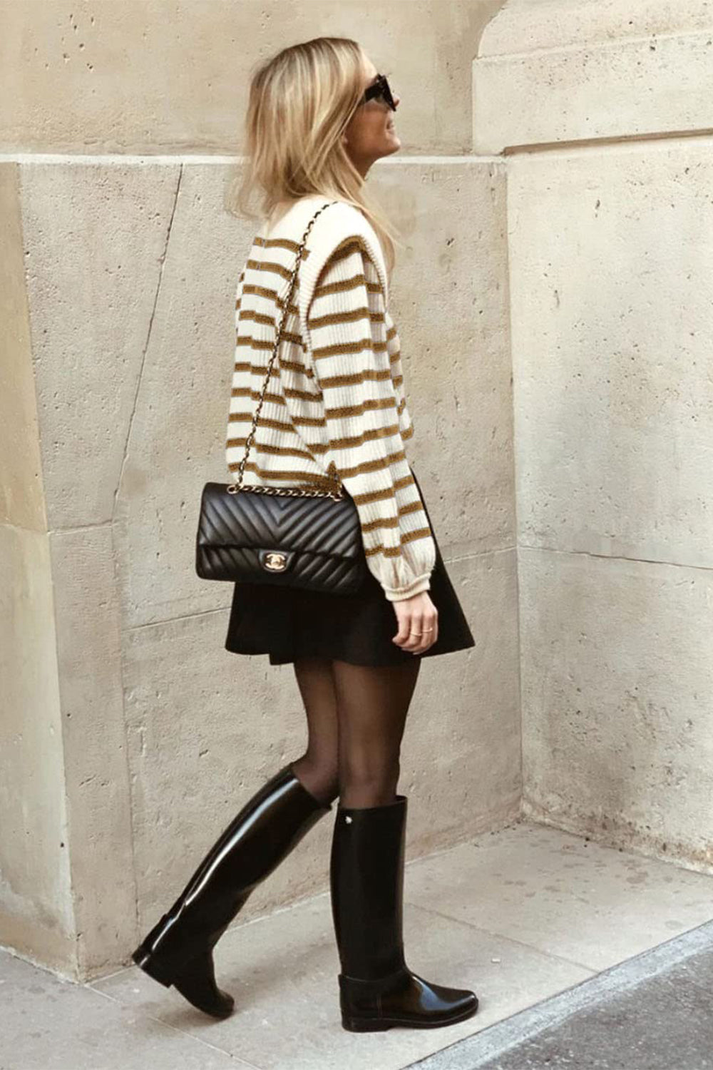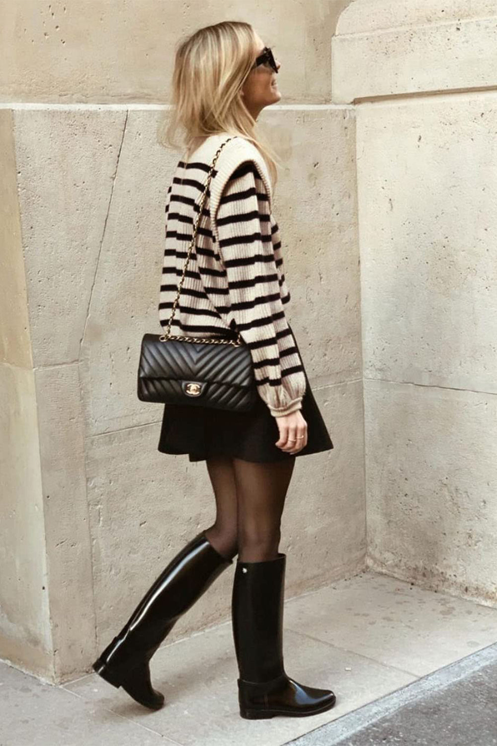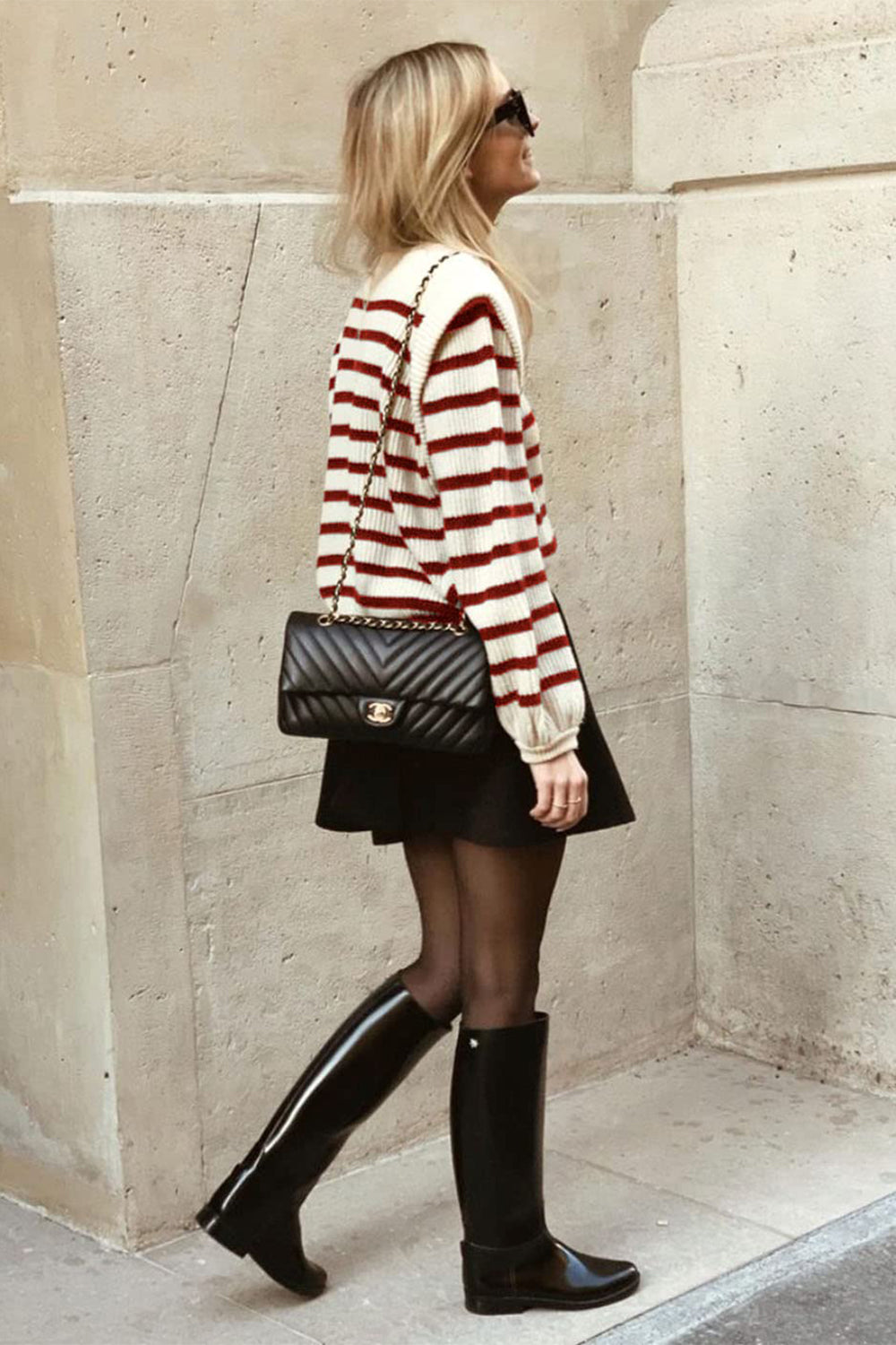 Long Lantern Sleeve Striped Ribbed Knit Pullover Top quantity